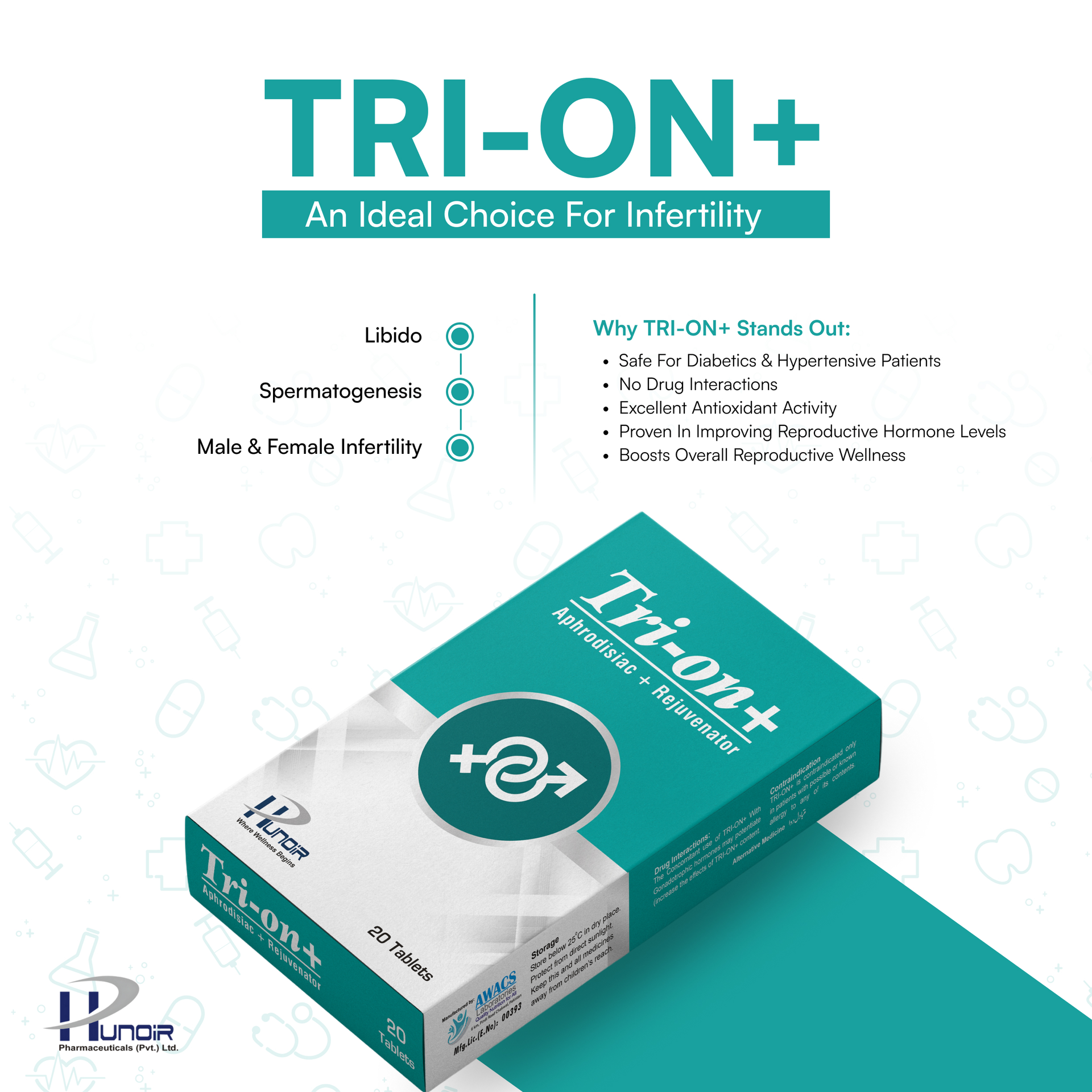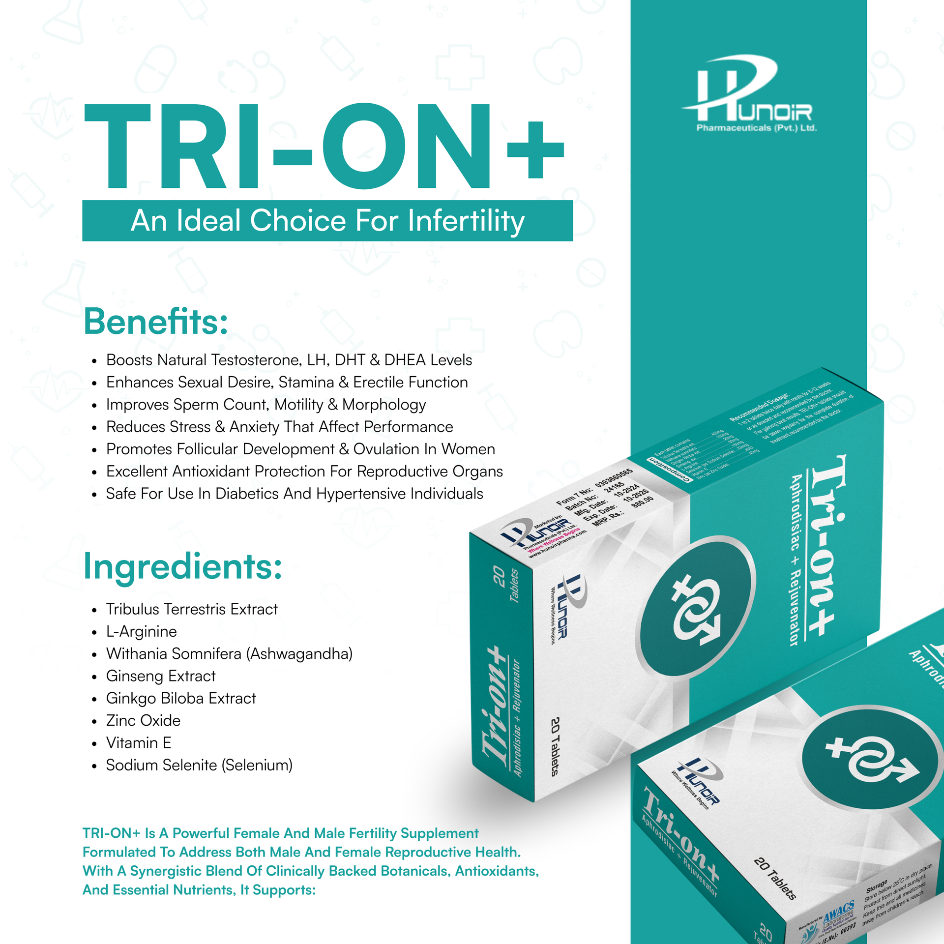 Tri-ON+ is a clinically formulated herbal supplement designed to enhance sexual vitality, reproductive health, and hormonal balance in both men and women. Powered by Tribulus Terrestris, L-Arginine, Ashwagandha, and other potent ingredients, it naturally boosts libido, testosterone, and sperm health — while also supporting ovulation and hormonal wellness in women. Safe for diabetics and hypertensives, Tri-ON+ is your all-natural ally for energy, confidence, and sexual wellness.